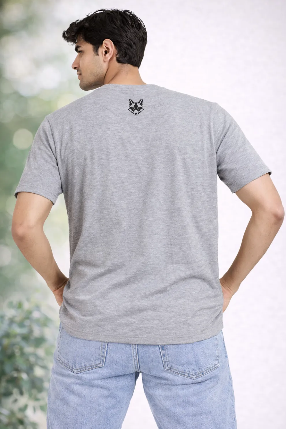 Gray regular-fit round-neck tee crafted from super-combed, bio-washed premium cotton for relaxed everyday wear.